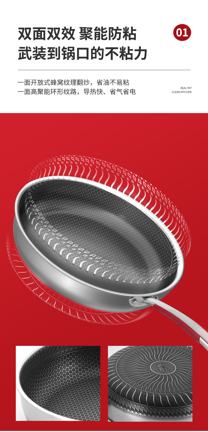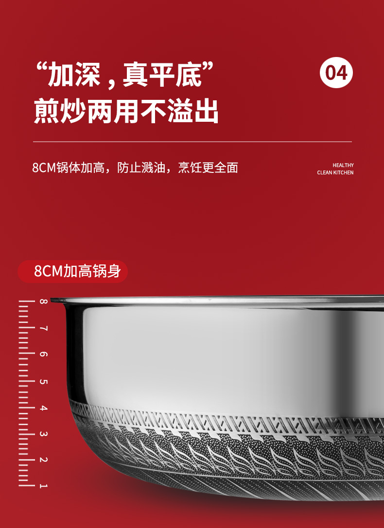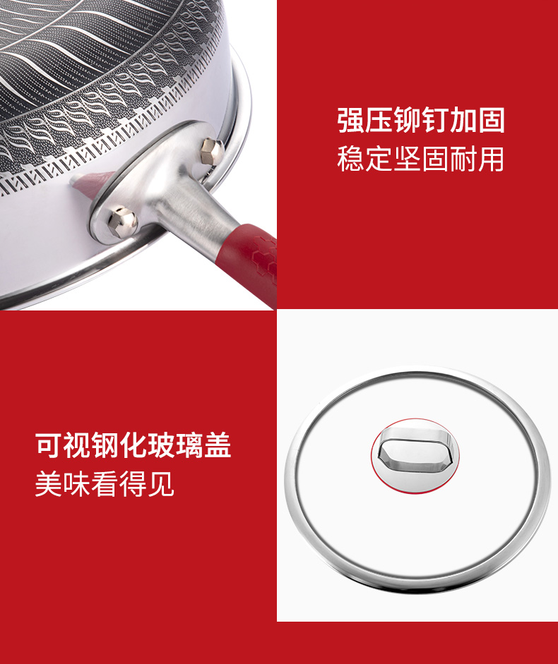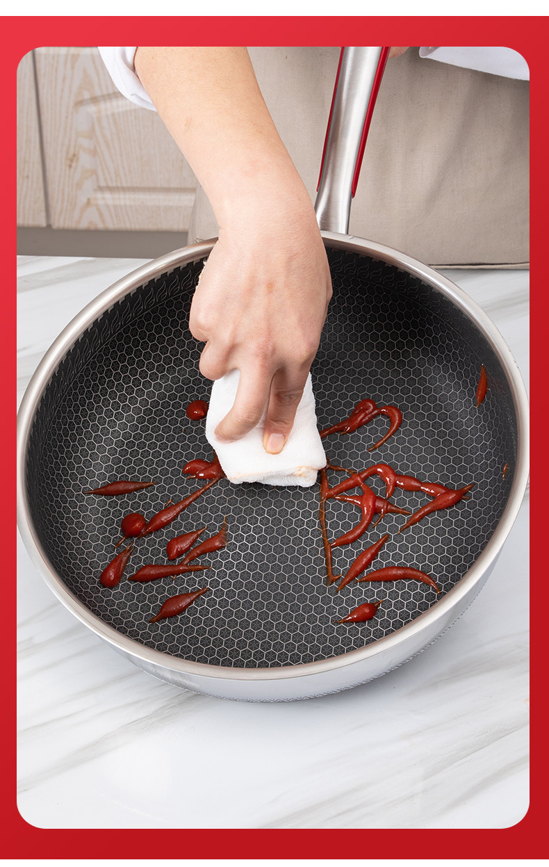 The surface of the pot is fine sanded and polished to reduce the amount of oil, which is in line with the trend of modern kitchen. The three-dimensional heat conduction effect of Fast Heat conduction, strong heat storage and even heating makes the whole pot difficult to stick to the pot under normal cooking conditions, and keeps the kitchen bright as new
